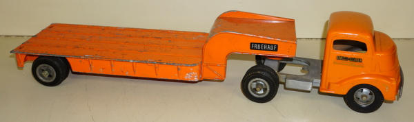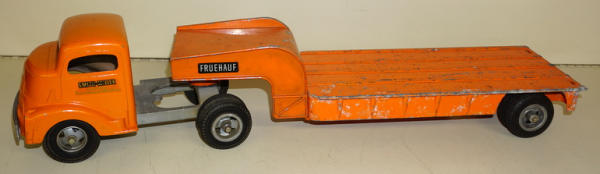 cab is nice original, 90% paint; trailer is solid deck original, but pieces are 2 different colors of orange, good project for restoration or customizing