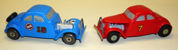 each 8" long, both nice, no hood for the blue one, 2x the money