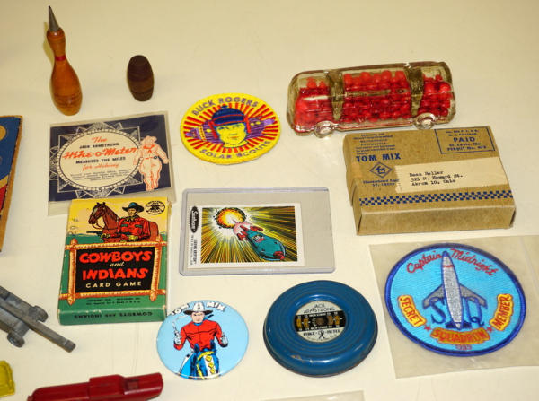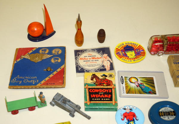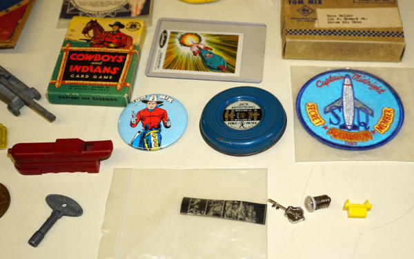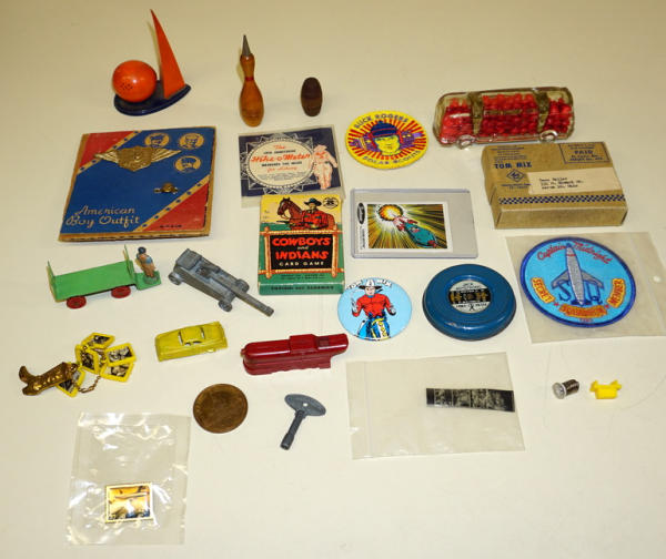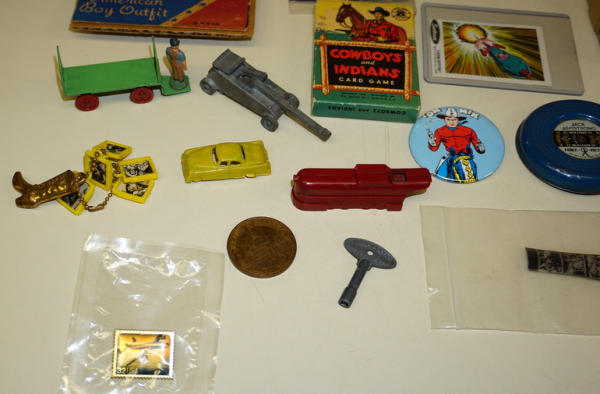 includes Glass bus candy container, Tom Mix box, Cowboy & Indian cards & more; all to go