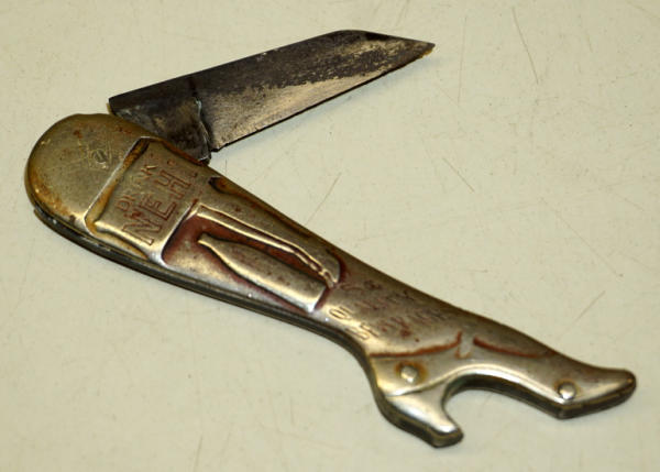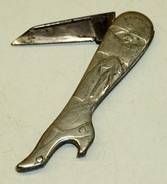 3.25" tall, has fairly heavy wear and blade has been overly sharpened,