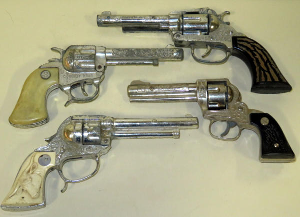 includes a Cowboy King, Nicols Stallion, American West Frontier .45 & one unmarked w/Long Horn grips; all have wear or damage; sell for one money