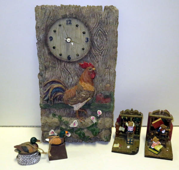 clock is 17" tall; all a ceramic or resin material; sell for one money