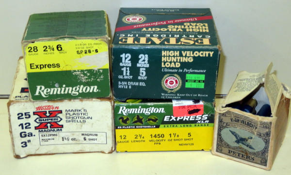 all boxes are either rough, mismatched or partial boxes; 14 rounds .410ga; 24 rounds 28ga.; 66 rounds 12ga; sell for one money