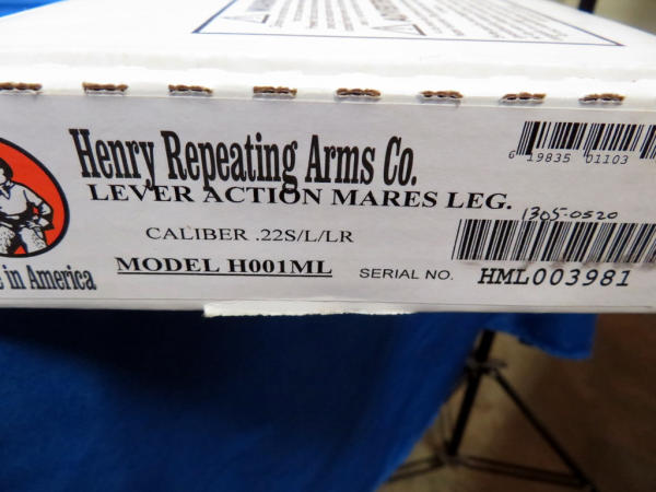 Mdl.H001ML; 13" BBL; mint & unfired; saddle ring; large loop lever; made in USA; SN#HML003981