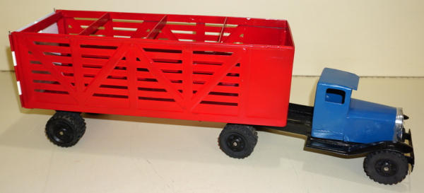 1930's pressed steel cab, trailer looks to be homemade, about 22" long overall