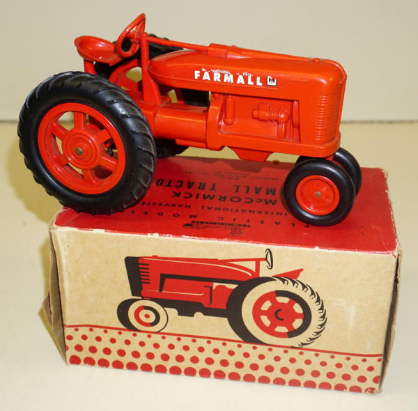 1950's plastic toy, near mint original with large FARMALL decals, box has some discoloration and general wear, box rates 7.5 condition