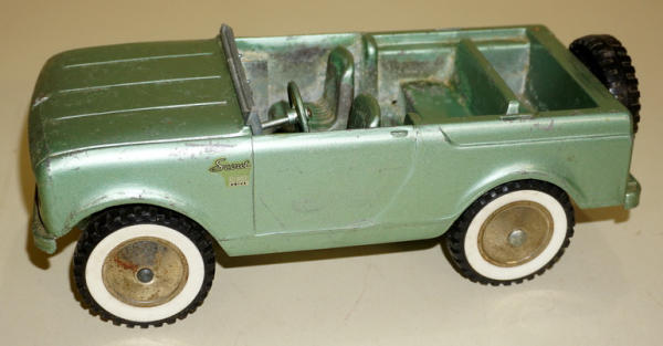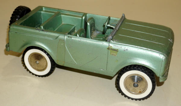 missing the windshield post and top, has the solid disc hubcaps, paint is about 75%, some paint loss on the floors and interior; good restoration/custom project toy