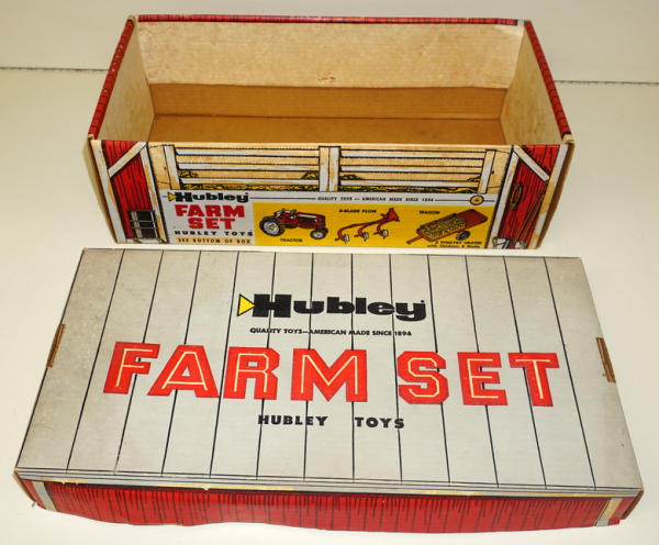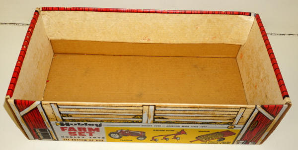 box only, has the bottom and top, but no box liner, this is the box that would have had the big 901, plow, trailer & chicken crates; box has insect damage and discoloration, box rates 7 condition