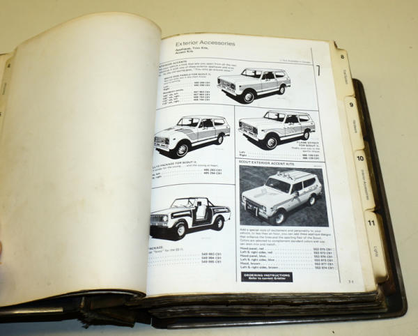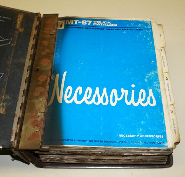 4" thick of material, full of accessories for trucks & scouts, includes some sheets on the IH tools too, fairly heavy wear, but lots of info and heavy