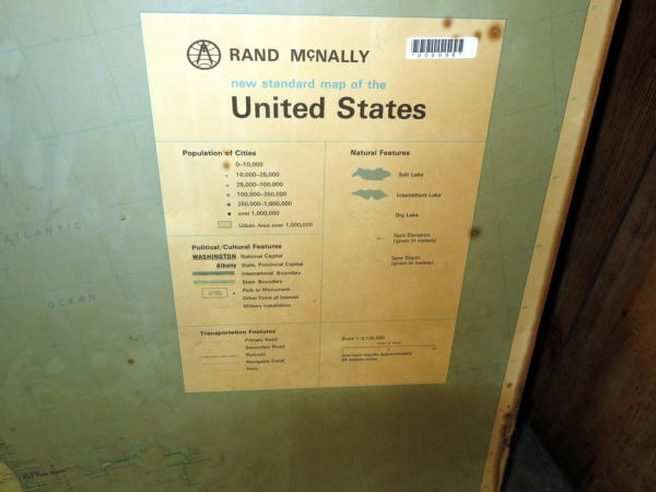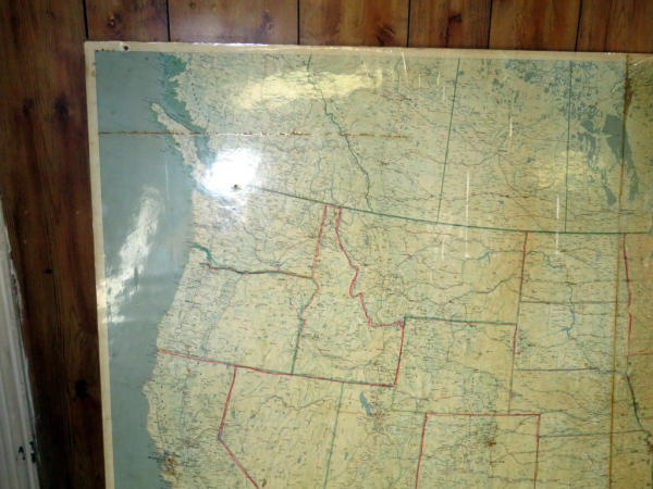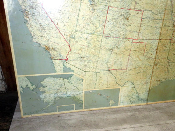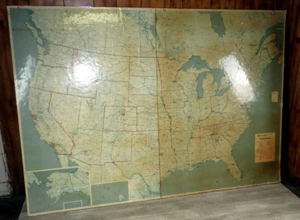 looks 1970s again; very large laminated map fixed to a board again; 65"x93"; has some spotting and wear but a great look; no shipping