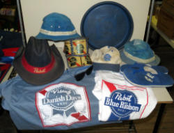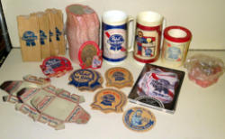 shirt is XL; includes pinbacks, ashtray, Peerless Beer ruler, pen, stickers & more