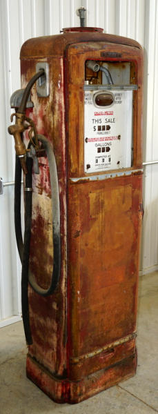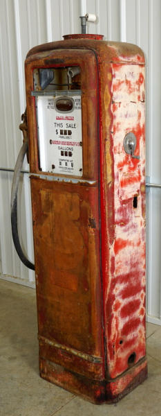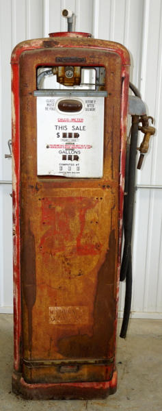 farm fresh, no ad glass, doors are loose, has some dings & dents, brass nozzle, no glass
