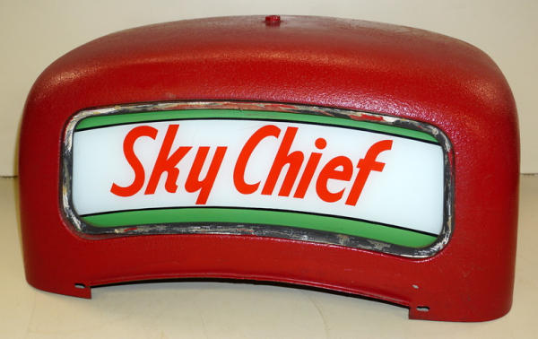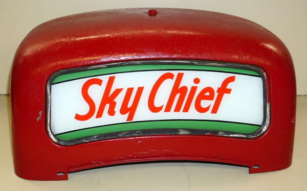 original metal topper, old repaint, ad glass is original and good on both sides, will fit the last 3 pumps in lots #613, #614, & #615