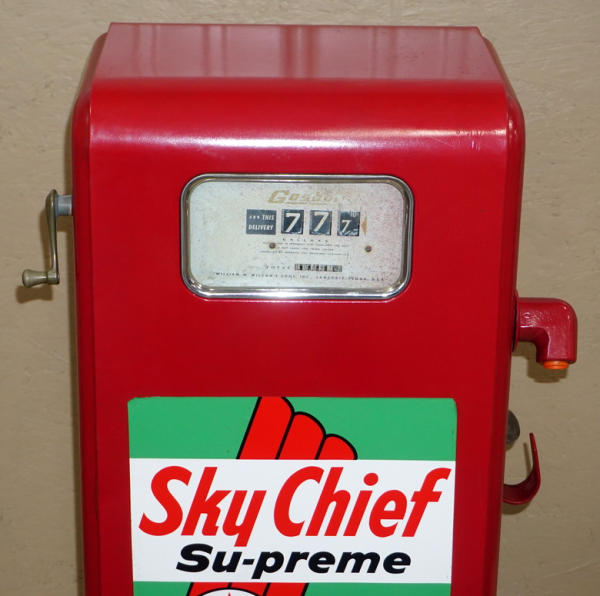 about 45" tall, repainted, no hose, Texaco Sky Chief decal on the front