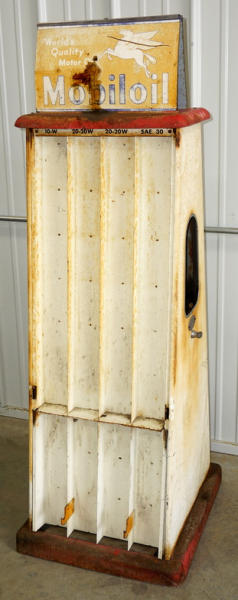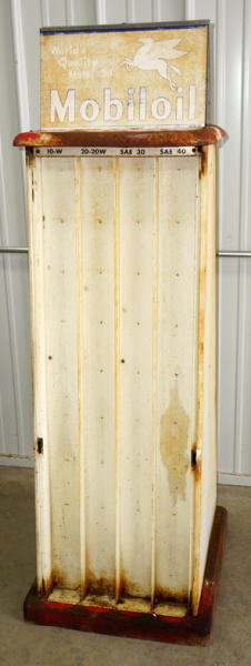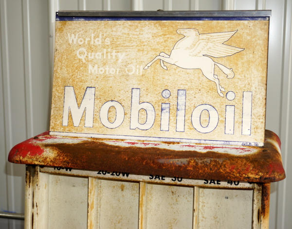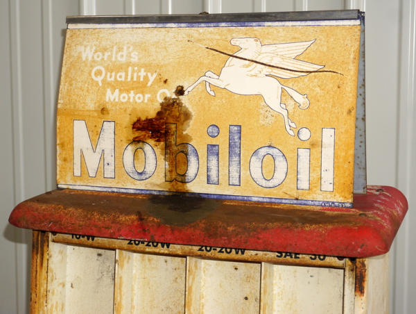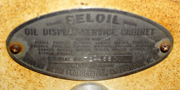 pretty straight, 66" tall, 22"x25" base; double sided sign is very faded, made by Seloil Co., good one to restore