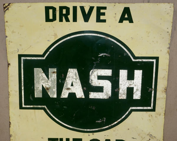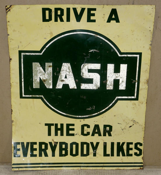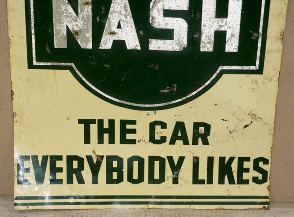34"x43", light metal, NASH is reflective, some heavy wear and a flimsy sign, rates 7 condition