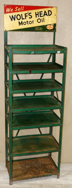 68"x21"x13" deep, original sign is 21"x9.5", original paint is work, but a great patina look to it, rates 7 condition, no shipping, local pickup only