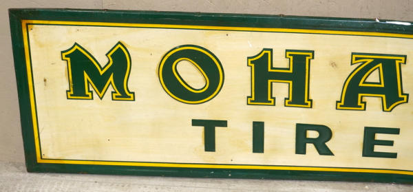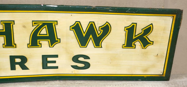17"x60", pretty good condition, but has a light film across the entire sign, probably clean up with some work, overall rates 8 condition