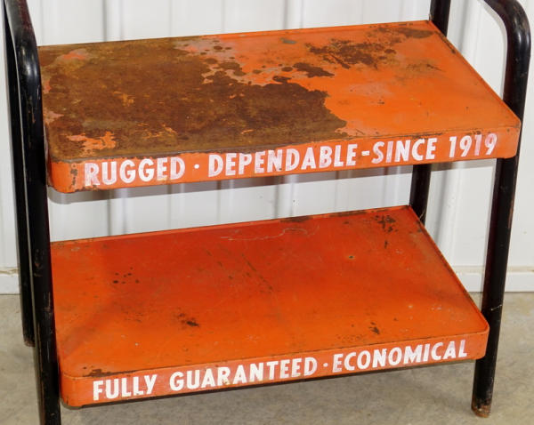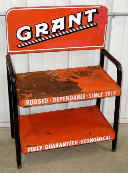 41"x29"x16", heavy damage to the top right hand corner of the sign and paint loss on the shelves