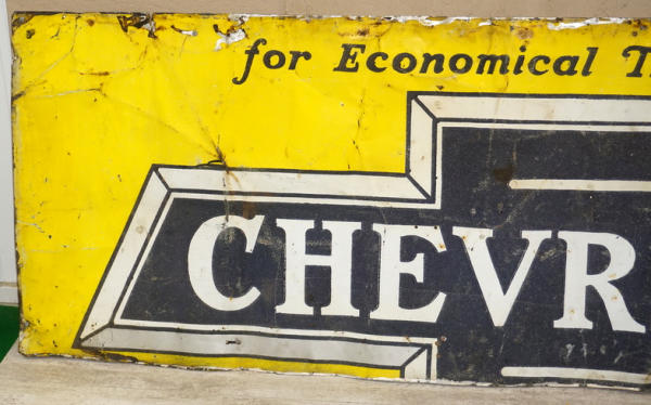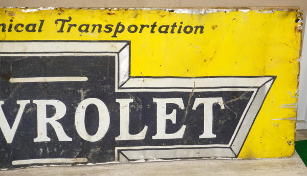 23"x93", part of an early road-side sign, heavy wear, rates 6 condition, heavy wood backing added; no shipping, local pickup only