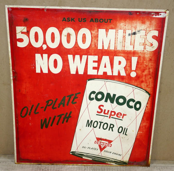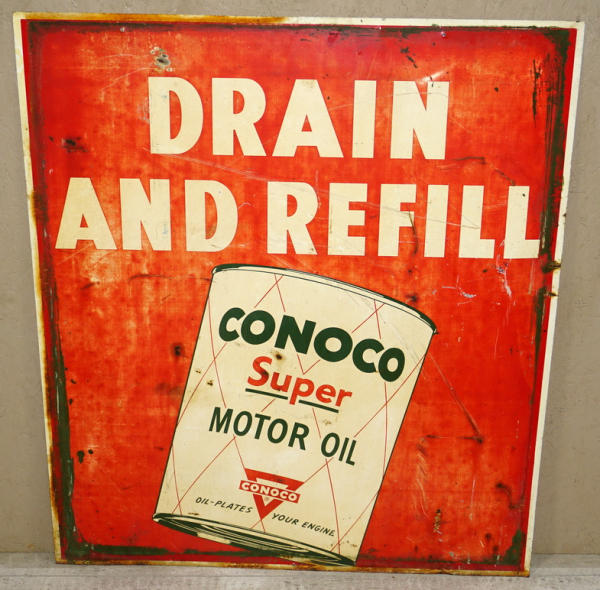 31.5"x36", good oil can graphics, both sides rate about 6.5/7 condition