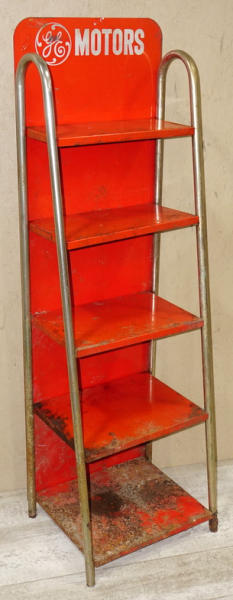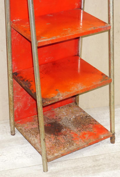 55"x17"x14" (bottom shelf", legs are rusty and has general wear, rates 6.5 condition