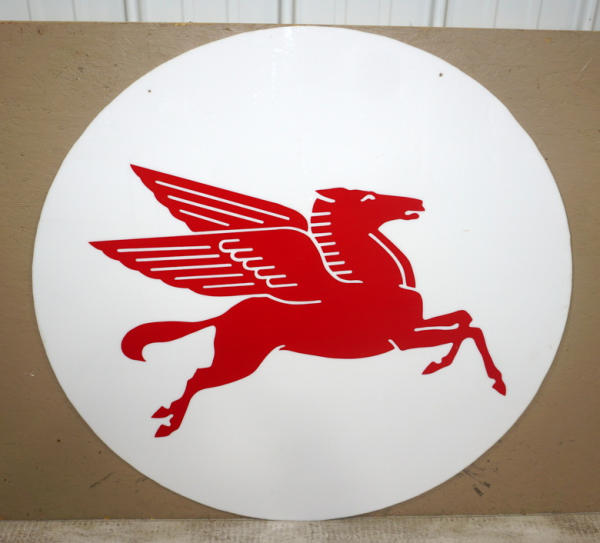 48" across, clean and nice, heavy flat plastic sign; no can or light, insert only