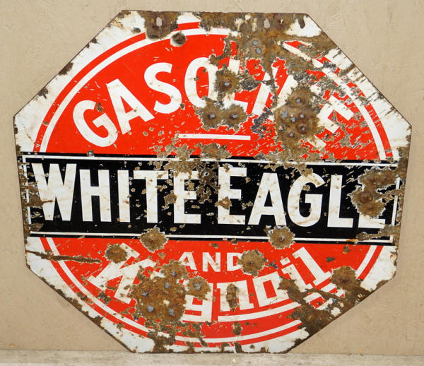 28"x28", one side has been nearly completely repainted, other side is poor condition, as-is barn hanger