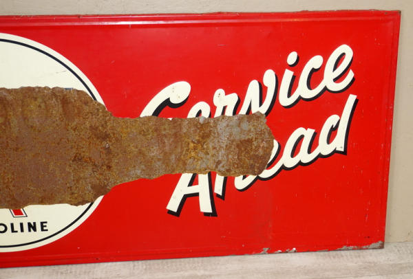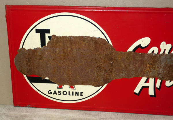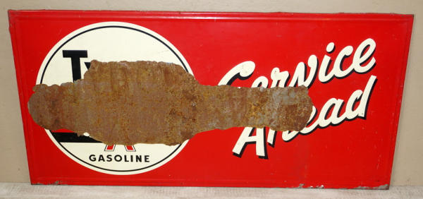 34"x71", wood back, has large spot of paint loss right through the center, might be able to restored