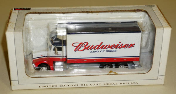Lucas Online Only John Deere Toy & Memorabilia Auction 15 Ohio Street, Wakonda, SD 57073 All from the collection of retired JD Dealer, Ron Lucas, formally of Goodland, KS. Catalog | Terms of Auction | Print Catalog Catalog | Terms Back to Catalog #508 – 1/64th: Pete Straight Truck---Budweiser NIB More Details NIB Location: 15 Ohio Street, Wakonda SD, 57073 Sold High Bid: $45.00 bidding history Bidding has closed on this lot Back to Catalog