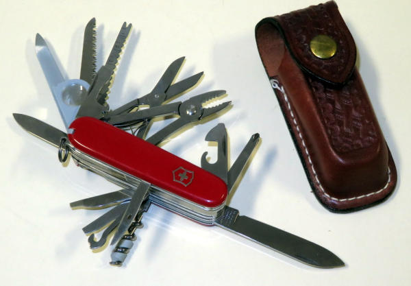 one of the largest Swiss Army knives I've seen; very nice; 1.25" thick and 3-5/8" long when folded