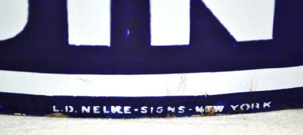 has good color and gloss, a few chips in field and around edges, reverse has chips and wear in field, marked L.D. Nelke-Signs