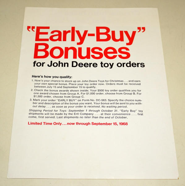 4 pages, just some household gifts inside, back side shows a stack of Boy Boxes including the never produced Square Baler & Planter boxes! Clean and nice,
