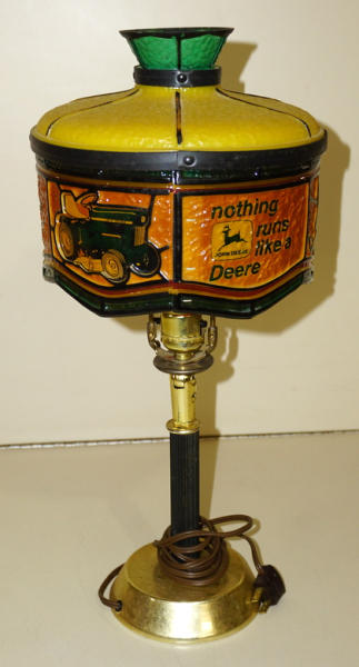 works, 19" tall, shade has discolored with age, but looks good when it up
