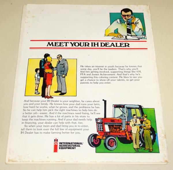 unique, has a 1086 on the back side; folder with about 10 pages inside with different IH equipment, some stains on the cover, contents are nice, unique, haven't sold one before