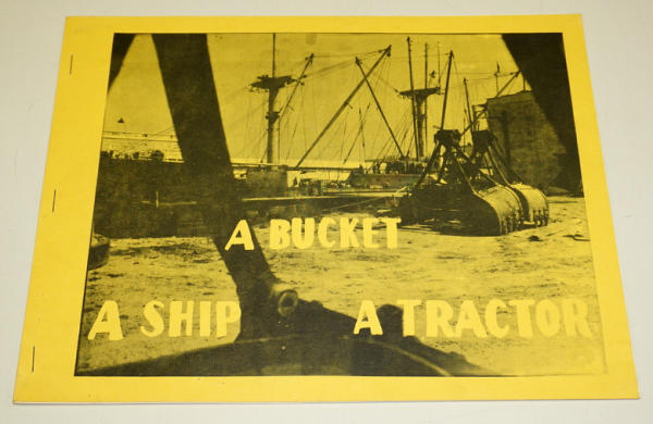 8 sheets, no date code, unique piece showing the JD 440 crawler helping unload fertilizer off a ship in Georgia, stapled construction, clean and nice, never seen one