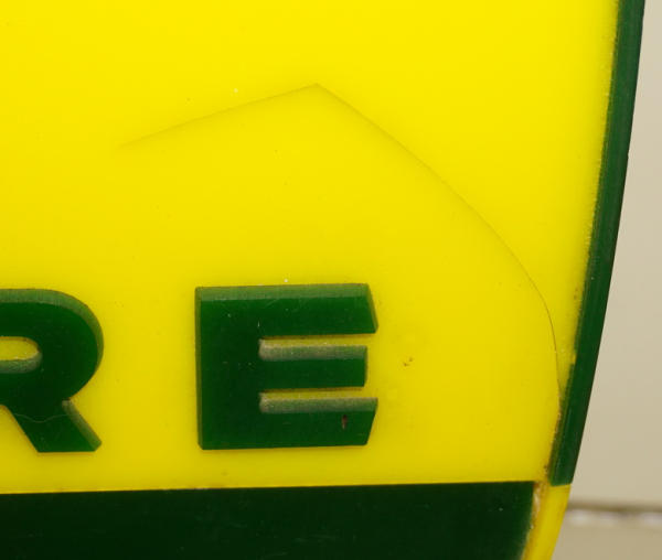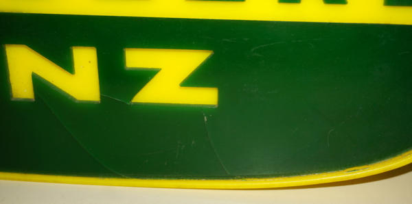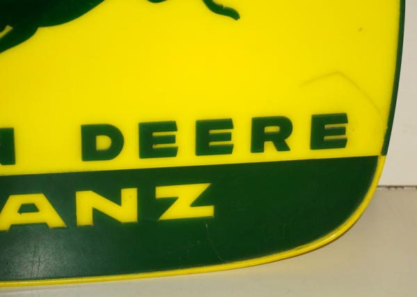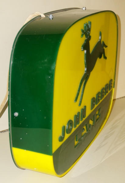 18"x12", heavy plastic, works, has a couple cracks, but lights up and works good, has a foreign plug on the end, but this one has an adapter included, another sign with a great size!