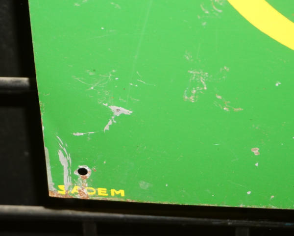 25.5"x19.75", light edge wear, definitely an old and original sign, but I've never seen one, makes me believe it is probably foreign, some light edge wear, rates 8.5 condition, nice piece