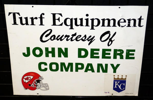 24"x18", came off a piece of L&G equipment at the Stadium, has some scuffs and wear, but a really unique piece for the KS collector; another piece we sold to Steve several years ago out of a prominent KC collection of a retired JD corporate employee