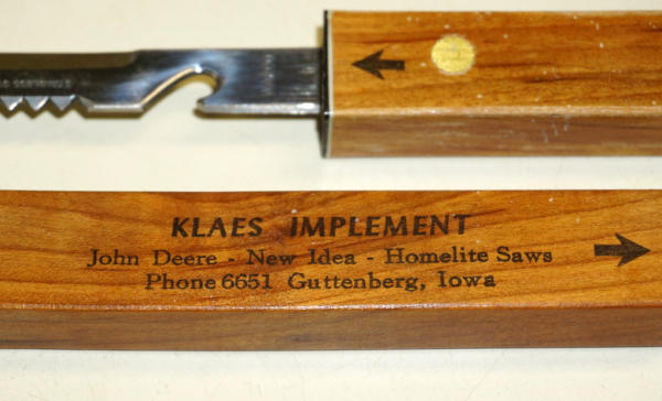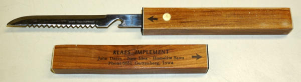 no logo, advertises JD, NI & Homelite Saws, near mint