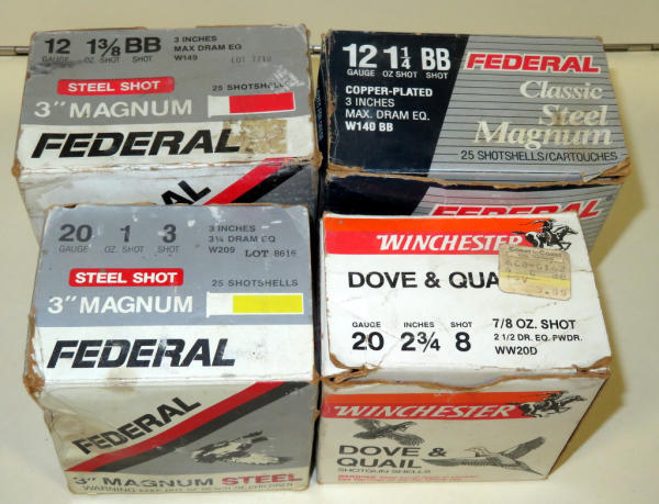 Fed. 12ga. BB-Shot 3" Mag Steel shot is full; other boxes are partial; about 90 rounds total; sell for one money