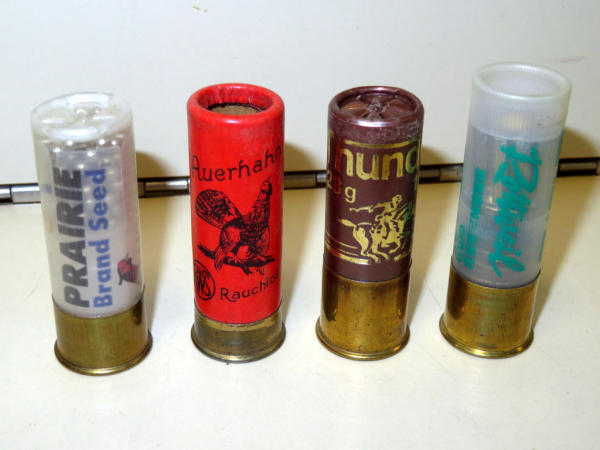 includes a Prairie Brand Seeds Dummy Shell; Rottweil clear Slug; Winchester Thunder 7.5 shot & Auerhahn paper shell w/turkey graphics; sell for one money