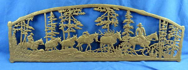 made of a heavy pot metal; has several horses & mules packing out Elk & Bighorn Sheep; 46" long