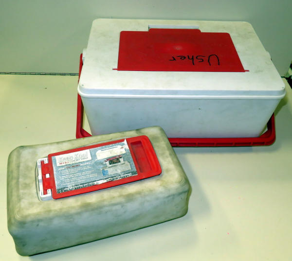 both good used condition; small one you put in freezer & other you pack ice around it; sell for one money