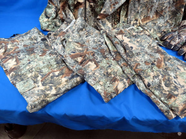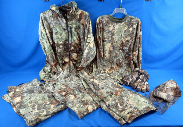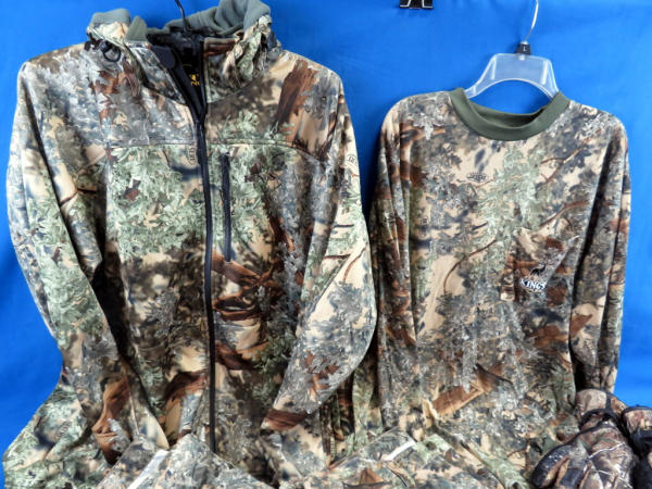 includes (2) 40R Pants, 40R Cargo Shorts, 2XL-R Long Sleeve Shirt, and lightweight coat (prob about a 2XL); also a Camo Hat w/Netting & Insulated camo gloves (these are not King's); all comes in an Under Armour Duffle Bag; used but great shape; all for one money