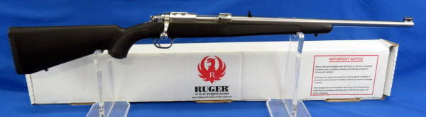 18" stainless barrel; black synthetic stock; overall terrific condition w/hardly any use; removable magazine; original box; made in USA; hard gun to find! SN#740-47063