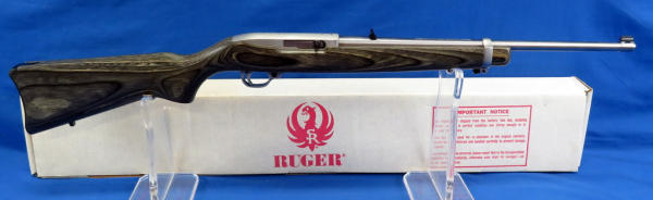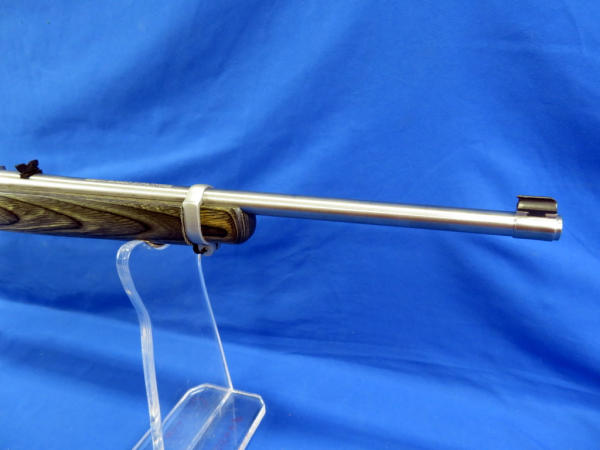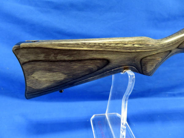18.5" stainless barrel; wood grain laminate stock; like new condition; original box; removable magazine; made in USA; SN#235-46075