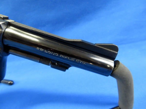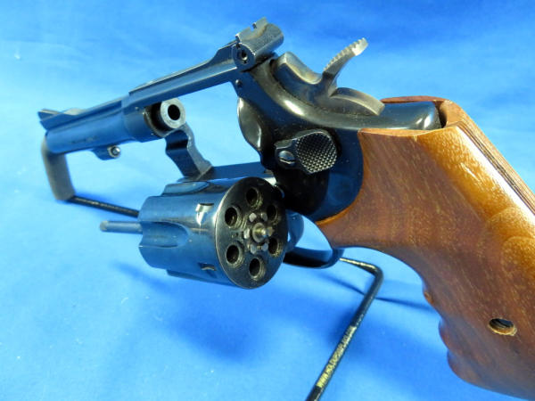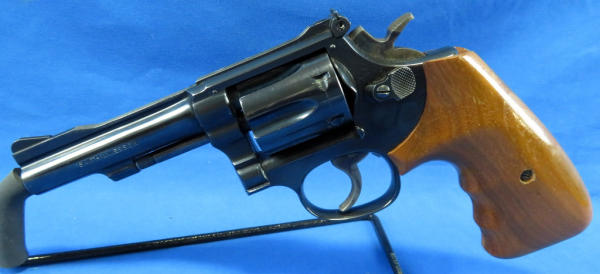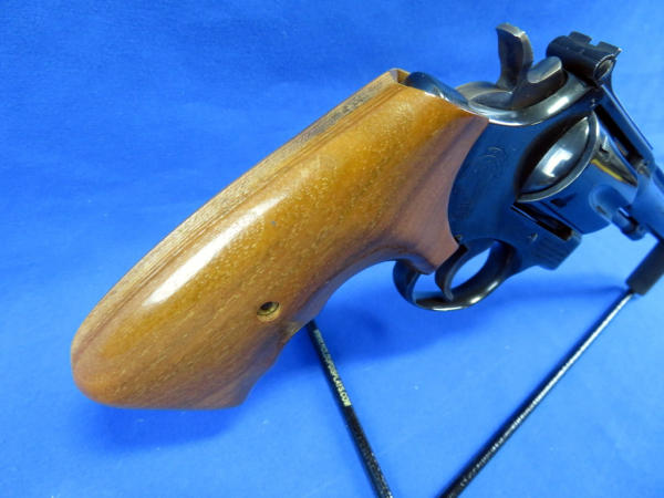 4" BBL; 6-shot swing out cylinder; aftermarket wood target grips; comes with a soft padded case; bluing is nice; made in USA; SN#29K5026