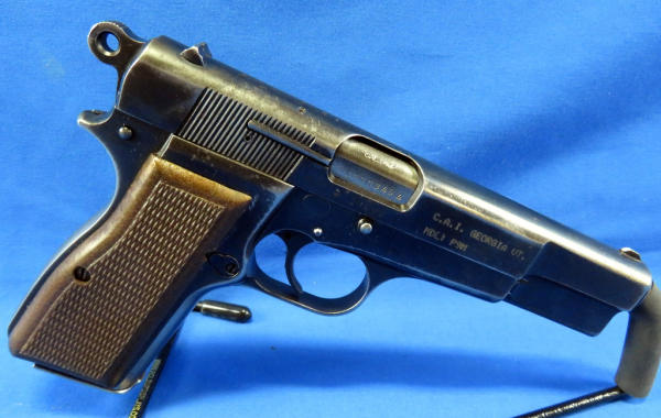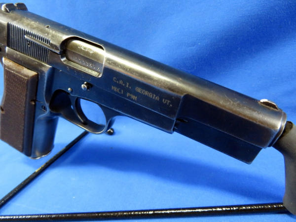 4.75" stainless barrel; can't find a maker; wood checkered grips; bluing loss; import marked; one magazine; SN#80003464