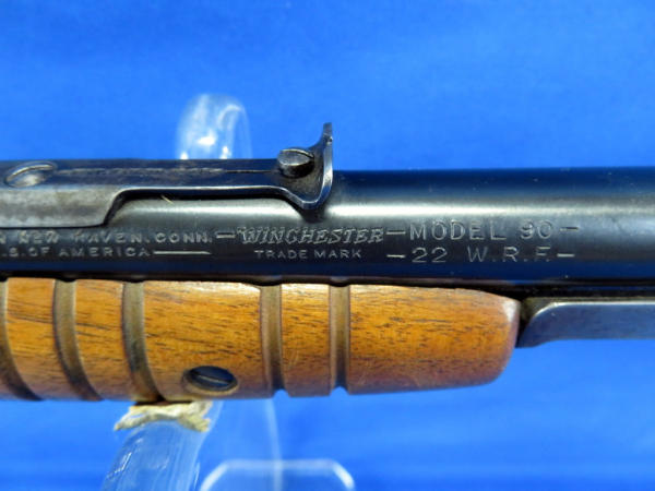 23" Round BBL; all mdl. 90s would have had an Oct. barrel, this is marked correctly on the round barrel though; believe the receiver has been buffed to look case hardened; smooth action; forearm is not original and has wrong screw; made in USA; SN#606159